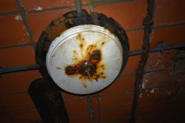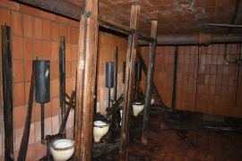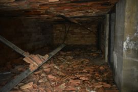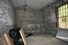 In 1942 the vacant Battery Daniels CRF station was selected to be converted into the Mines I secondary observation station. The CRF station which had been built in 1920, contained one level and a small manhole under the building. A second story was added, and the lower level was renovated. Two DPF pads would be installed along with new communications equipment. One oddity in this station is the use of a staple ladder to access the second floor rather than the traditional wood ladder used in all the other FC stations on the post.