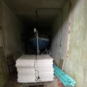 In 1942 the vacant Battery Daniels CRF station was selected to be converted into the Mines I secondary observation station. The CRF station which had been built in 1920, contained one level and a small manhole under the building. A second story was added, and the lower level was renovated. Two DPF pads would be installed along with new communications equipment. One oddity in this station is the use of a staple ladder to access the second floor rather than the traditional wood ladder used in all the other FC stations on the post.