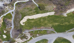Construction began in 1943 on this 90mm fixed gun battery. There were two fixed guns and two mobile guns. Two magazines were built along with two generator buildings. A Battery Commanders Station was built in between the magazines. The guns had a range of 4.5 miles and were for sinking high speed boats. 30 men were needed for the operation of the two fixed guns. The area where the magazines were located is still visible on some Ariel images.